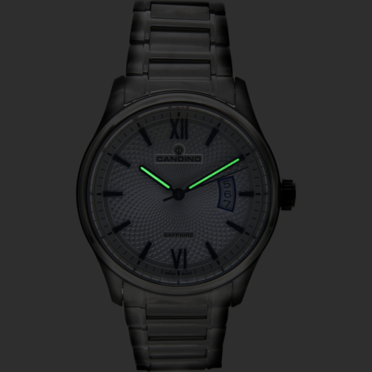 Представленная модель входит в коллекцию Classic Timeless. Это стильные мужские часы. Материал корпуса часов — сталь. Стекло - сапфировое. Основной цвет циферблата серебряный. В данной модели используются следующие усложнения: дата, .