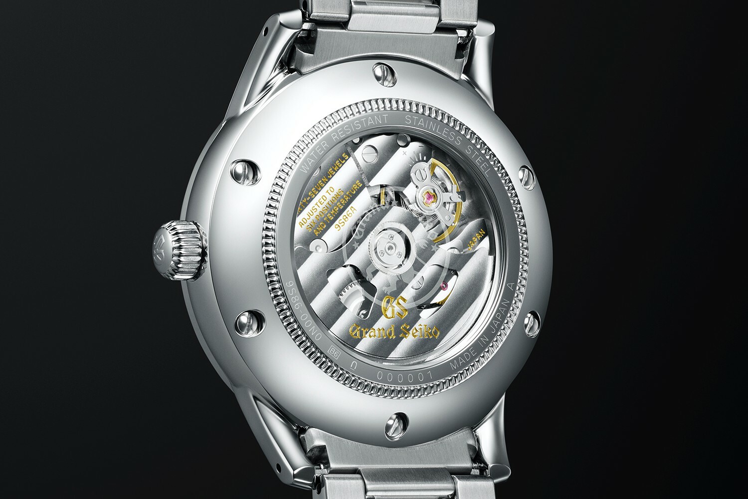 Мануфактурный механизм с автоматическим заводом калибр 9S86. В революционном калибре 9S86 высокая частота колебаний баланса 36000 пк/час, запас хода в 55 часов и 37 рубинов в качестве камневых опор и палет анкерного спуска. Погрешность точности хода каждого механизма во время лабораторных испытаний не должна превышать -3/+5 секунд в сутки и проверяется последовательно в 6 положениях на протяжении 12 суток. При использовании часов обычно среднесуточная погрешность составляет -1/+8 секунд. Красота механизма раскрывает уникальную японскую эстетику, которой славится Grand Seiko - мосты и платина имеют тонкую текстуру отделки, грани скошены и отполированы Функции: часовая, минутная и секундная стрелки; отображение времени второго часового пояса в 24-часовом формате; индикация даты, синхронизированная с корректировкой времени GMT.