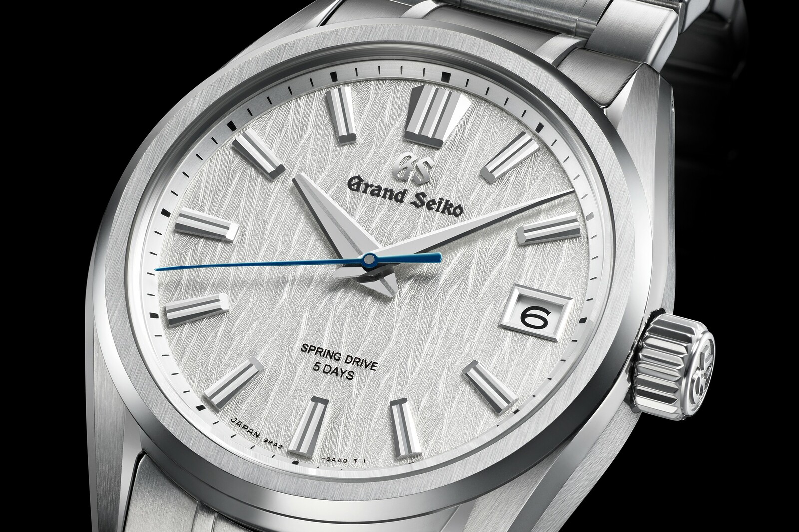 Мануфактурный механизм с автоматическим заводом калибр 9RA2. В часах с уникальной технологией Spring Drive сочетается точность хода кварцевых часов и эстетика традиционного часового мастерства. В качестве регулятора хода вместо традиционного анкерного спуска используется устройство Tri-synchro. Энергия от заводного барабана вращает колесо-глайдер, которое генерирует слабый электрический ток. От него работает электронный модуль с кварцевым резонатором, который сравнивает скорость вращения колеса с эталонной частотой кварца и с помощью электромагнитного тормоза регулирует его вращение до идеальной точности. Отличительной особенностью моделей Spring Drive является абсолютно плавный ход секундной стрелки и отсутствие “тиканья”. Точность хода ±10 секунд в месяц или ±0.5 сек./день. Красота механизма раскрывает уникальную японскую эстетику, которой славится Grand Seiko - мосты и платина имеют тонкую текстуру отделки, грани скошены и отполированы, шляпки винтов с синением. Функции: часовая, минутная и секундная стрелки; индикация даты; индикатор запаса хода с обратной стороны.