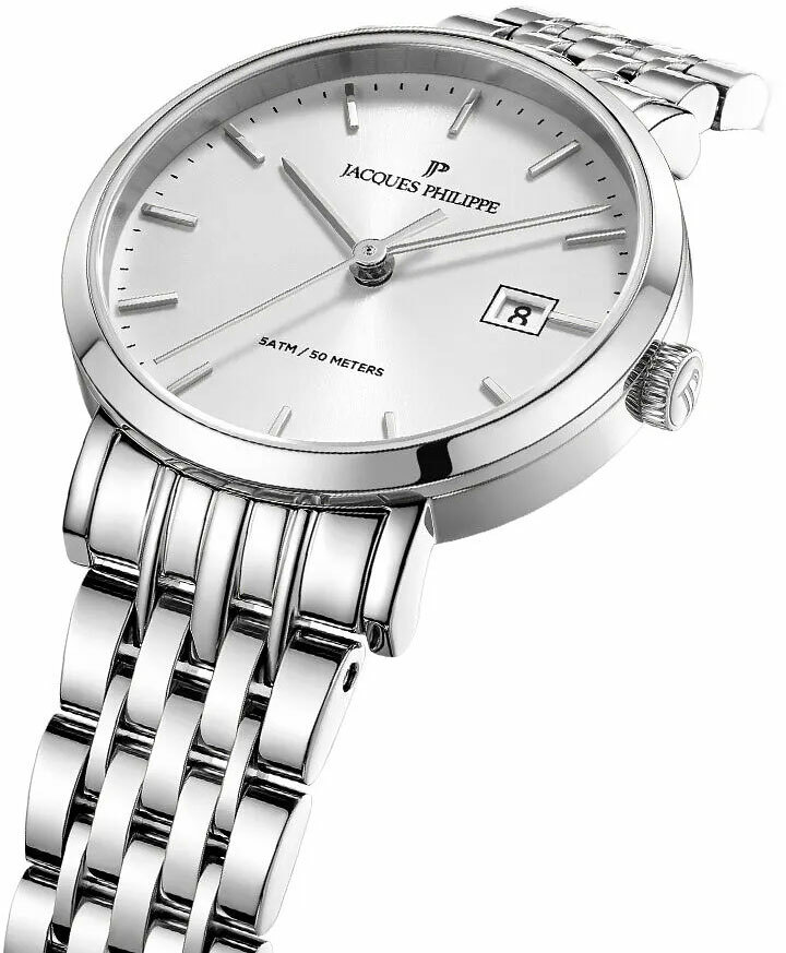 Корпус круглой формы выполнен из нержавеющей стали марки 316L с полировкой и матовой шлифовкой поверхностей. Диаметр корпуса модели Jacques Philippe JPQLS941326 составляет 29 мм, толщина - 8 мм. Захлопывающаяся задняя крышка с гравировкой. Водостойкость 5 АТМ (50 метров).