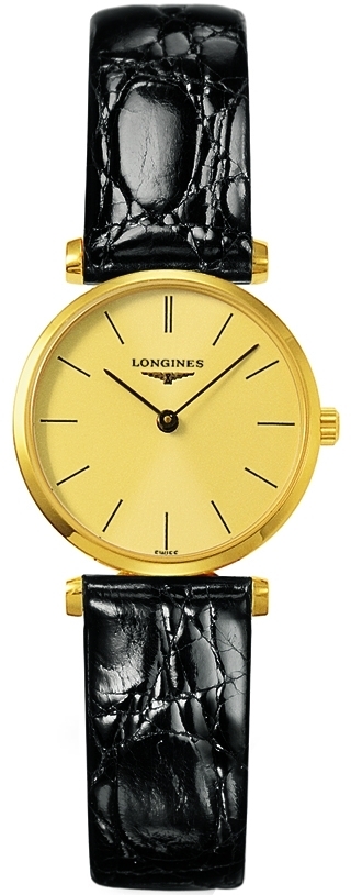 Модель Longines La Grande Classique L4.209.2.32.2 поставляется с черным ремешком из кожи аллигатора, ширина 13 мм, классическая застежка пряжка из нержавеющей стали с PVD-покрытием цвета золота.