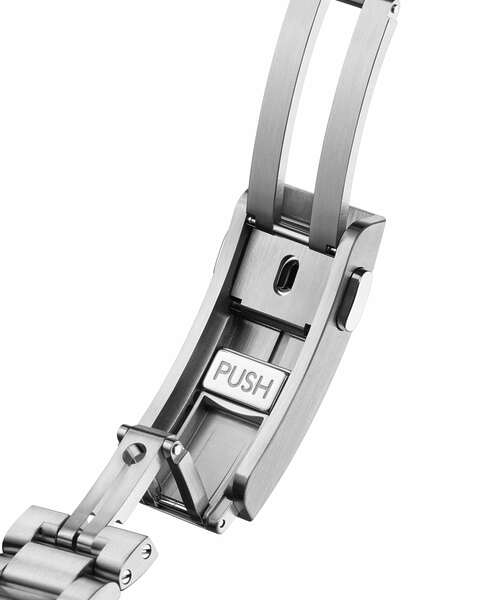 Модель 215.30.46.21.03.001 на браслете с 3 рядами литых звеньев из высокосортной стали O-MegaSteel, поверхности с различными видами финишной обработки, ширина 22 мм. Браслетная застежка, раскладывающаяся при нажатии на кнопки двойной системы блокировки, с дайверской системой увеличения длины для ношения поверх гидрокостюма.