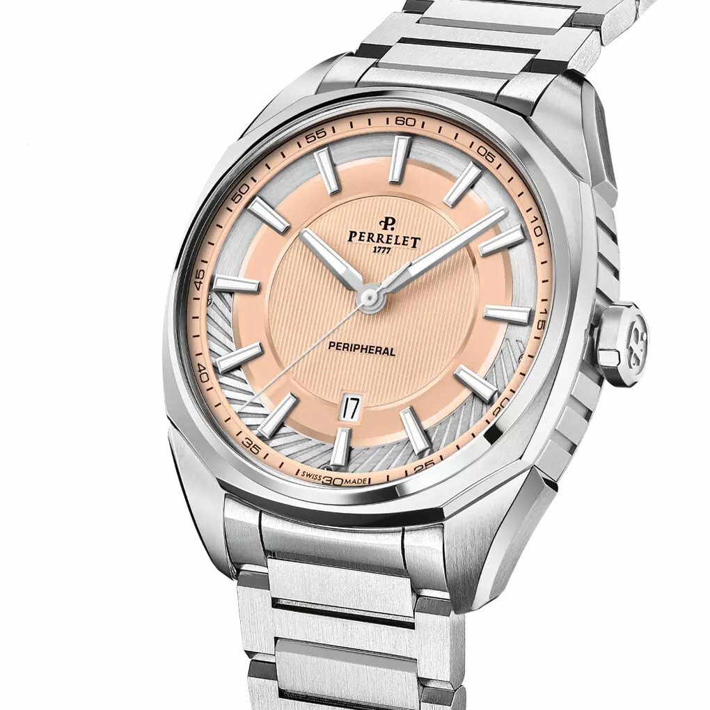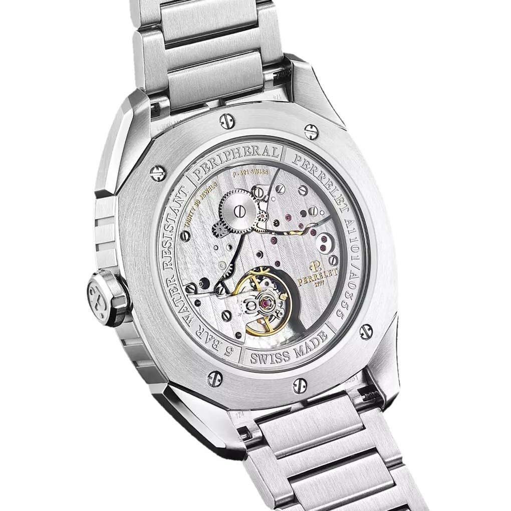 Швейцарские часы Perrelet LAB Peripheral A1100/E созданы для мужчин, обладающих отличным вкусом, и соответствуют современному стилю casual-chic, новому в коллекциях Perrelet. Модели LAB Peripheral отличает переферический ротор автоподзавода, видимый со стороны циферблата. Благодаря его движению с естественным ритмом часы Perrelet LAB Peripheral выделяет сдержанная и изысканная анимация как нельзя лучше подходящая к девизу мануфактуры Perrelet - «Роскошь в движении».
