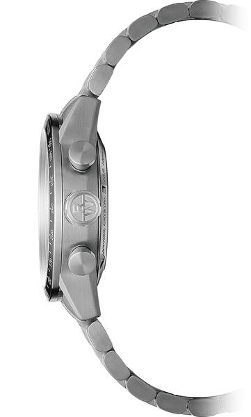 Швейцарский механизм с автоподзаводом, калибр RW5030, с запасом хода 62 часов, частотой 28 800 пк/час, на 27 камнях. Погрешность точности хода не более -10/+15 сек. в сутки. Центральные часовая, минутная и маленькая секундная стрелки. Индикация даты со стилизованными цифрами в апертуре на отметке “ часов”. Функция хронографа с центральной секундной стрелкой и 30-минутным индикаторами.