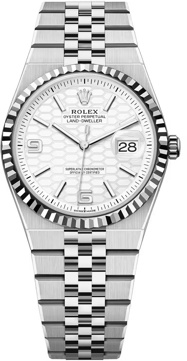 Циферблат насыщенно-белого цвета, украшенный геометрическим узором «соты» с сатинированной отделкой. Для его создания используются как традиционные техники декоративной отделки, так и высокотехнологичные методы. Для нанесения структуры «соты», а также для формирования тонких полосок в бороздках, разделяющих ячейки, используется фемтосекундный лазер. Аппликация часовых индексов с драгоценным покрытием и полировкой. Люминесцентное вещество Chromalight с длительным свечением в темноте, запатентованное компанией Rolex, на часовых индексах и стрелках.