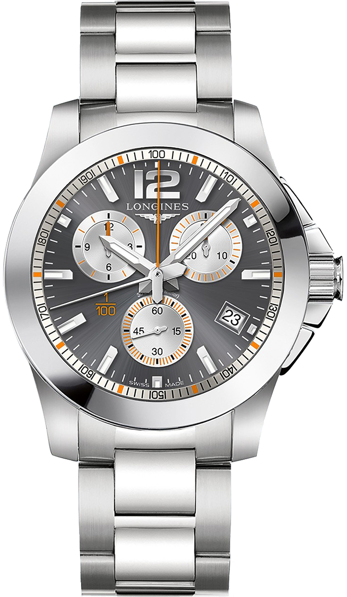 Модель Longines Conquest L3.700.4.79.6 поставляется с браслетом из нержавеющей стали с литыми звеньями H-образной формы, ширина 21 мм, браслетная застежка тройного сложения “бабочка”раскладывается при нажатии кнопок двойной фиксации.