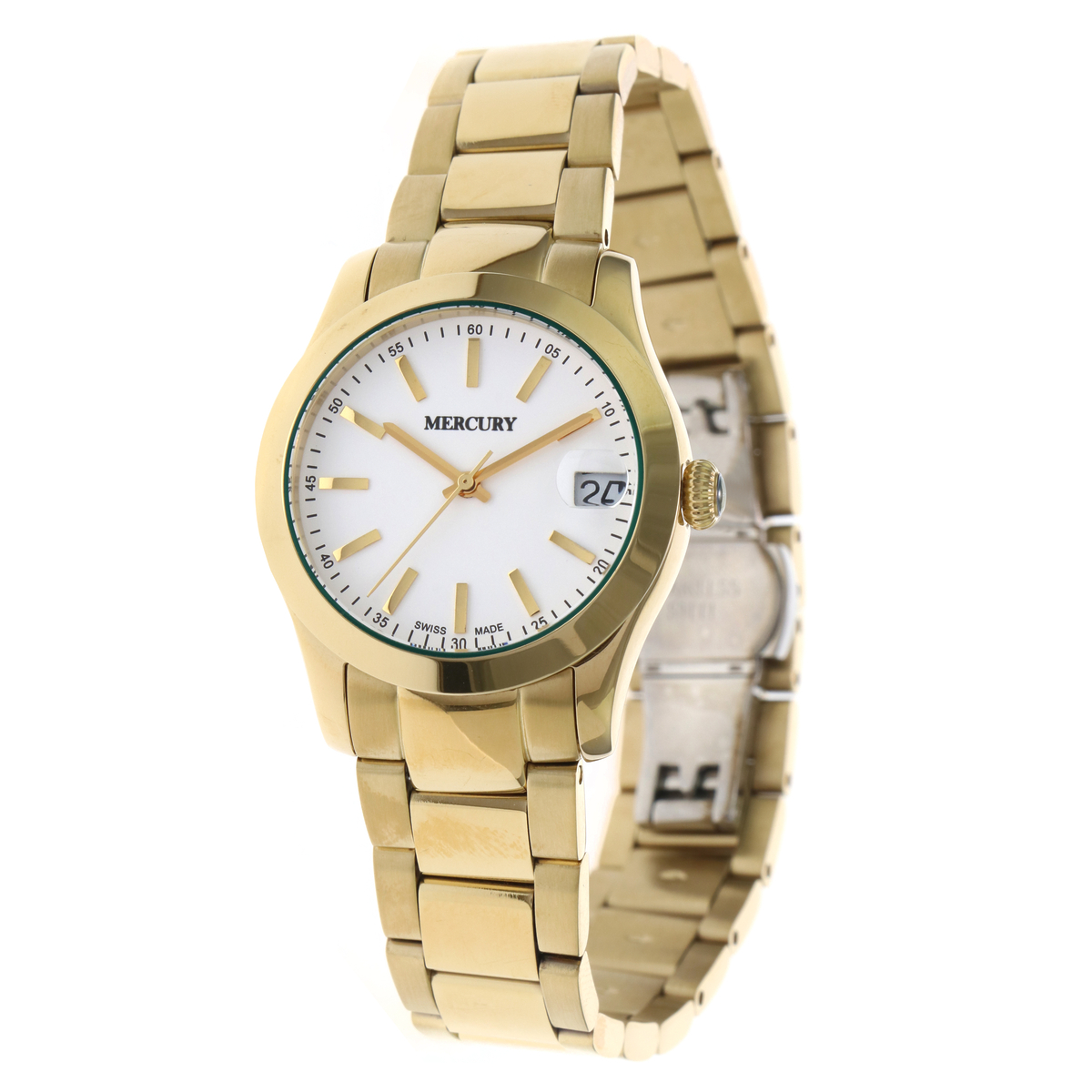 Корпус выполнен из нержавеющей стали марки 316L с PVD покрытием цвета золота. Диаметр корпуса модели Mercury MEL468-GG-1 составляет 31.0 мм. Задняя крышка с гравировкой. Водозащита 50 метров (5 ATM, 169 feet).