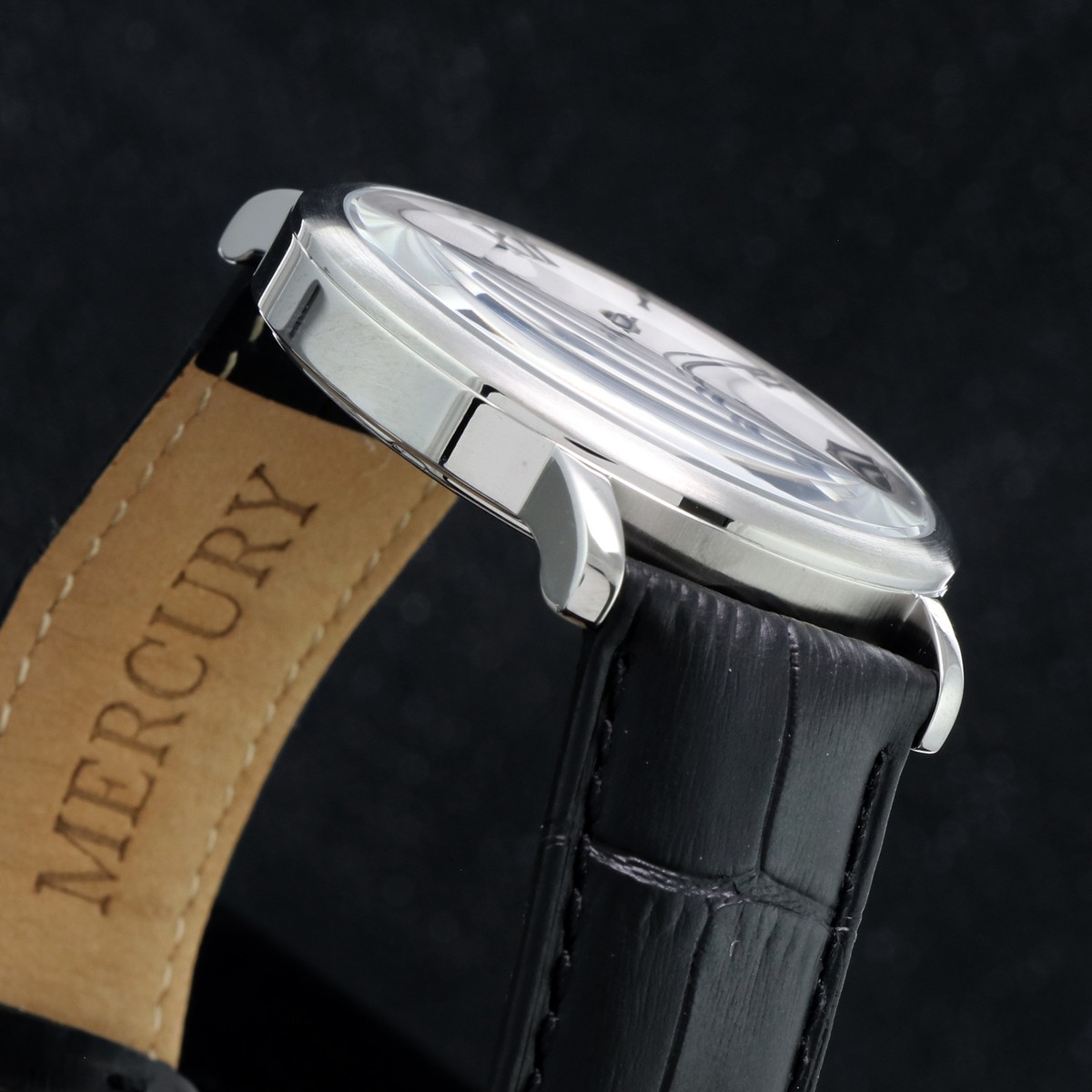 Корпус выполнен из нержавеющей стали марки 316L. Диаметр корпуса модели Mercury ME405-SL-1 составляет 42.0 мм, толщина - 9.1 мм. Задняя крышка с гравировкой. Водозащита 50 метров (5 ATM, 169 feet).