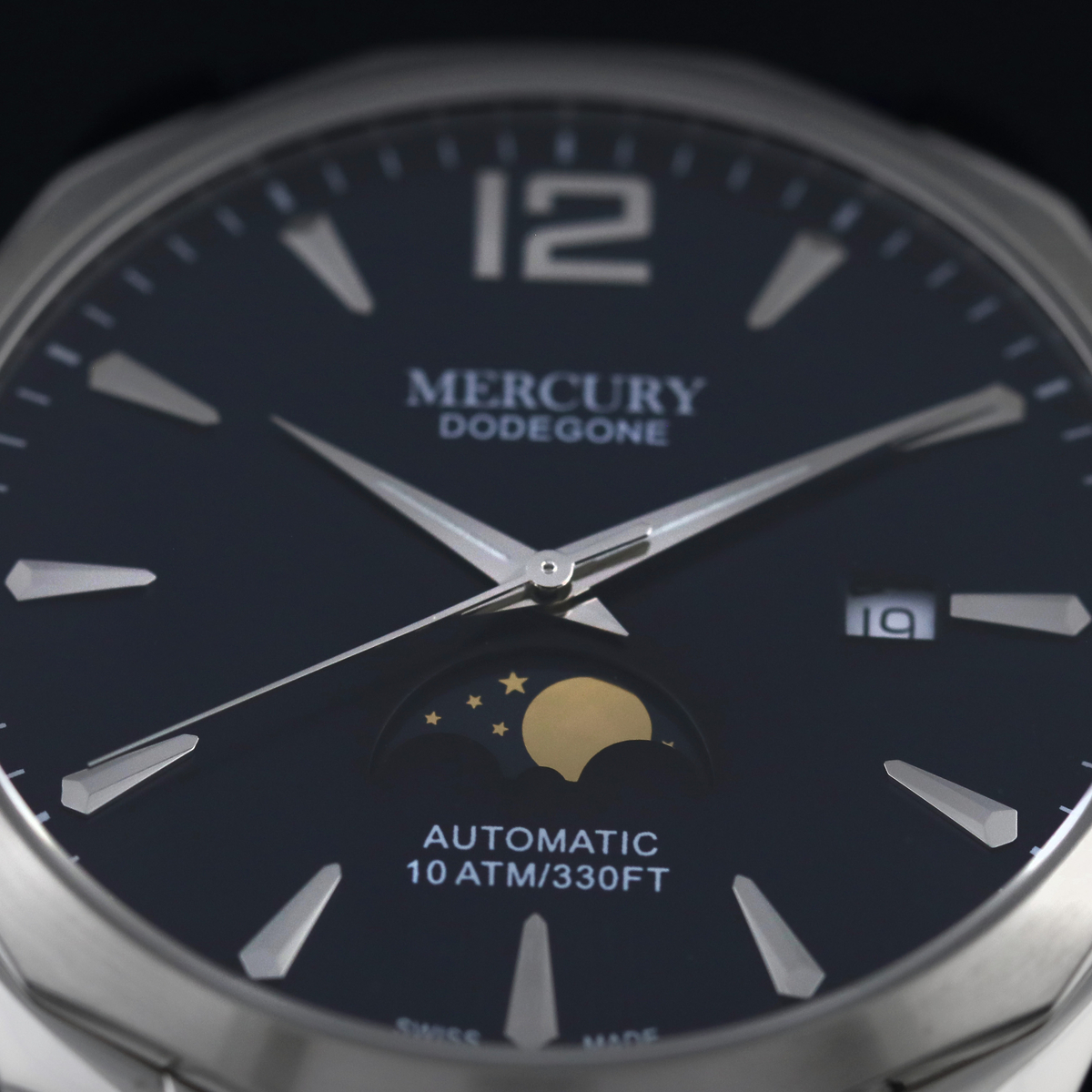 Швейцарские часы Mercury Dodegone Phase de Lune MEA480-SL-9 созданы для мужчин и входят в Dodegone Collection - линейку часов Swiss Made с отличительным двенадцатиугольным дизайном. Вдохновленные промышленной архитектурой и кодами современной спортивной часовой коллекции, они воплощают в себе слияние эстетической прочности и механической точности.