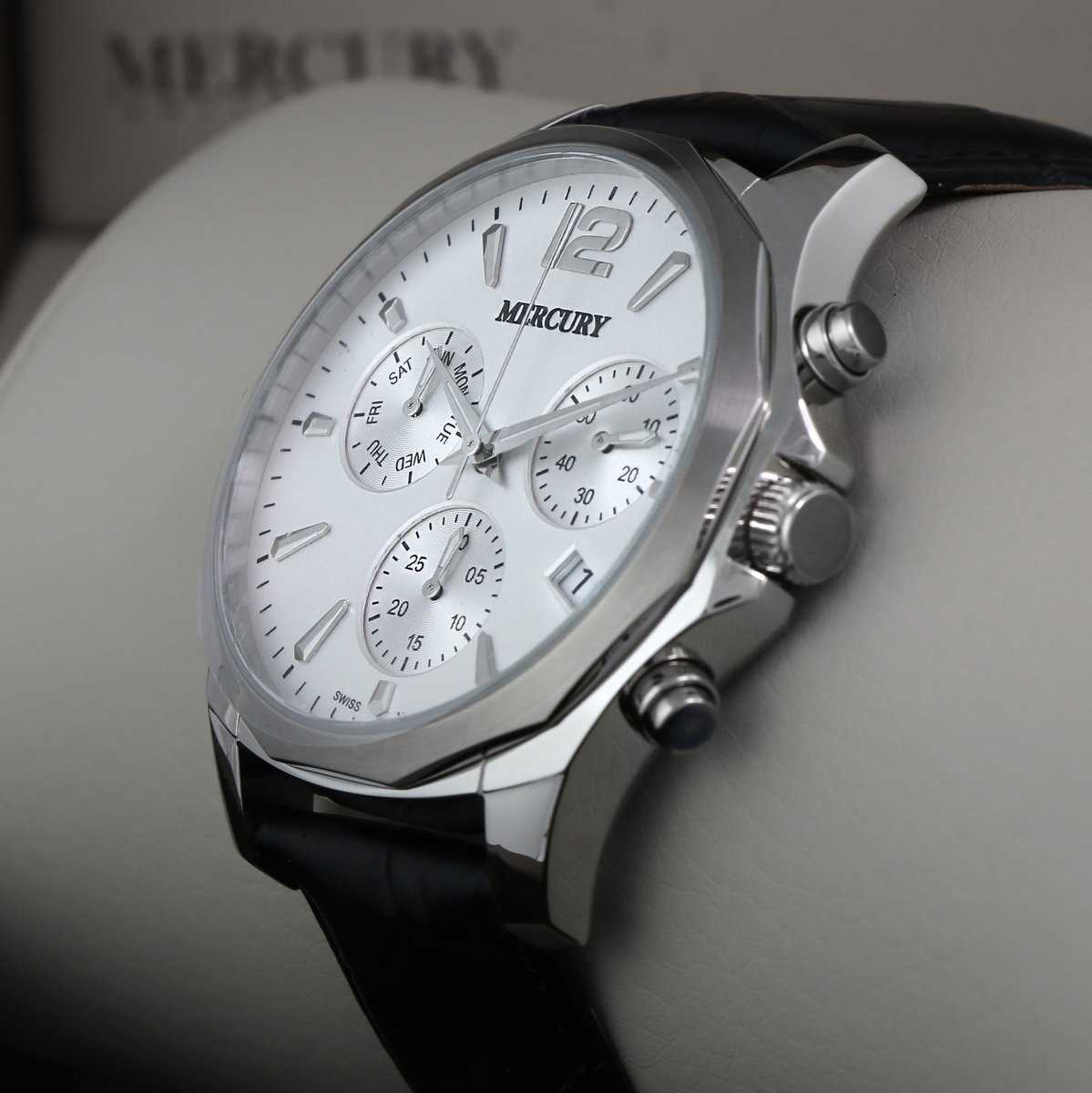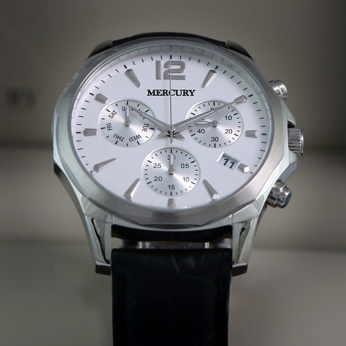 Корпус выполнен из нержавеющей стали марки 316L. Модель отличает характерный двенадцатиугольный безель. Диаметр корпуса модели Mercury MEC463-SS-1 составляет 43.5 мм. Задняя крышка с гравировкой. Водозащита 50 метров (5 ATM, 169 feet).
