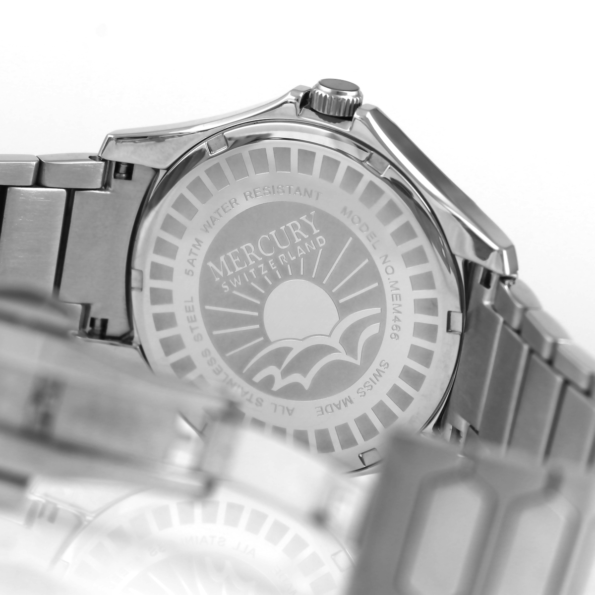 Корпус выполнен из нержавеющей стали марки 316L. Модель отличает характерный двенадцатиугольный безель. Диаметр корпуса модели Mercury MEM466-SS-12 составляет 41.0 мм. Задняя крышка с гравировкой. Водозащита 50 метров (5 ATM, 169 feet).