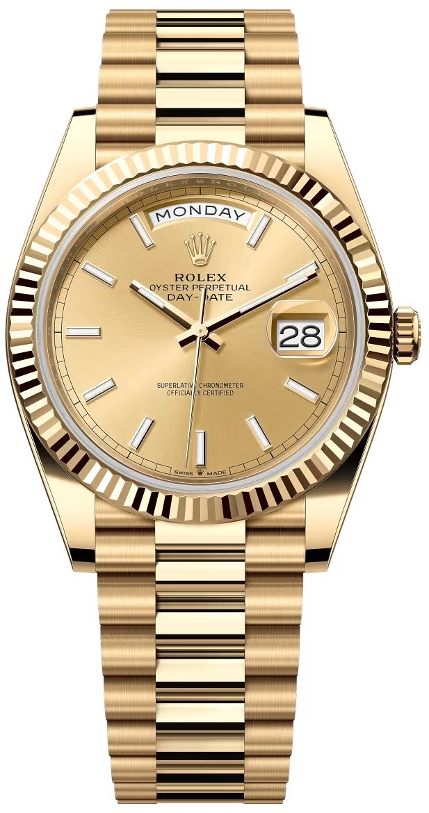 Швейцарские часы Rolex Day-Date 40 228238-0003 созданы для успешных современных мужчин и женщин, предпочитающих динамичный классический стиль и не чуждых настоящей роскоши. Уникальные, неподвластные времени модели Rolex Day-Date стали выбором многих самых известных персон благодаря своей непревзойденной надежности и элегантности. Корпус Oyster был первым в мире с запатентованной водонепроницаемостью, разработанный Rolex в 1926 году. Изготовленный из самых чистых и престижных сплавов, корпус Oyster обладает повышенной устойчивостью к любому внешнему воздействию. Внутри него работает мануфактурный механизм превосходящий своей точностью хронометры C.O.S.C.