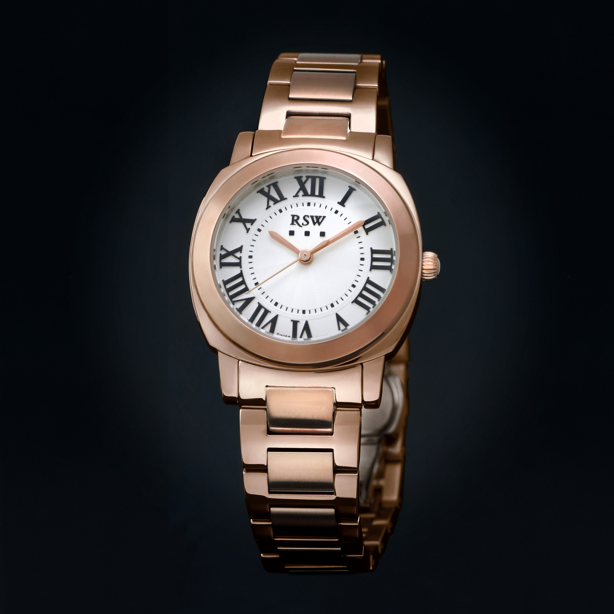 Корпус имеет форму “подушка” и выполнен из нержавеющей стали марки 316L с матовым сатинированием и полировкой. Стойкое к возникновению царапин PVD покрытием цвета розового золота. Ширина корпуса модели RSWL114-RR-1 составляет 30.0 мм, толщина - 9.08 мм. Переводная коронка имеет форму "луковица". Задняя крышка с эмблемой марки крепится к корпусу на 6 винтах. Водозащита 50 метров (5 ATM, 169 feet).