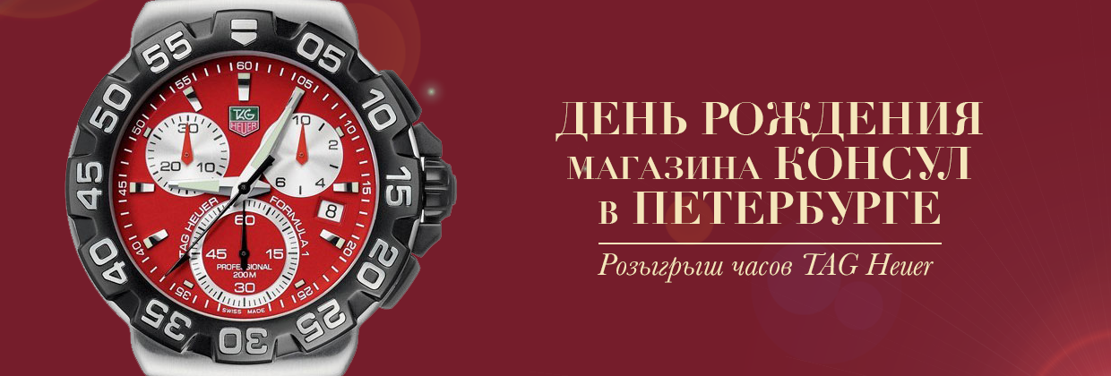 Флагманский часовой салон КОНСУЛ в Санкт-Петербурге отмечает свой 11-й день рождения и разыгрывает среди покупателей легендарные спортивные часы TAG Heuer Formula 1.