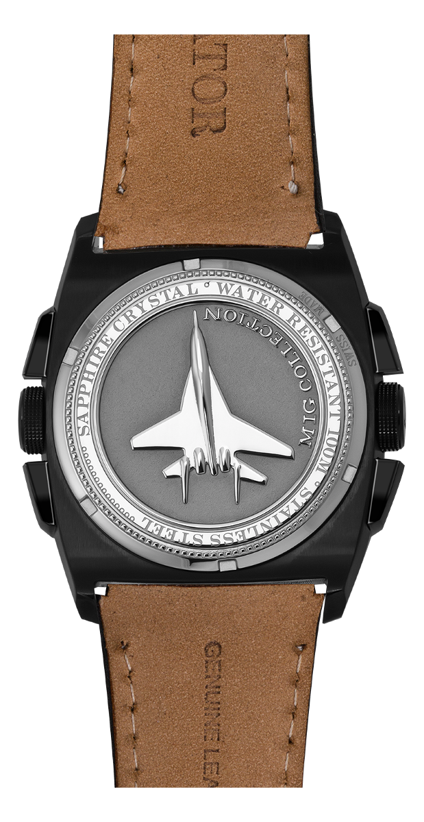 Данная модель входит в коллекцию MIG-29. Это мужские часы. Материал корпуса часов — сталь. Стекло - сапфировое. Цвет циферблата - черный. Из основных функций на циферблате представлены: часы, минуты, секунды. В этих часах используются такие усложнения как дата, хронограф. Диаметр корпуса 44мм.