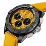 Модель Breitling Avenger B01 Chronograph 44 Night Mission SB0147101I1X1 имеет желтый ремешок из телячьей кожи с тиснением, ширина 22/20 мм. Браслетная раскладывающаяся застежка из титана, гравировка с названием марки и ее эмблема.