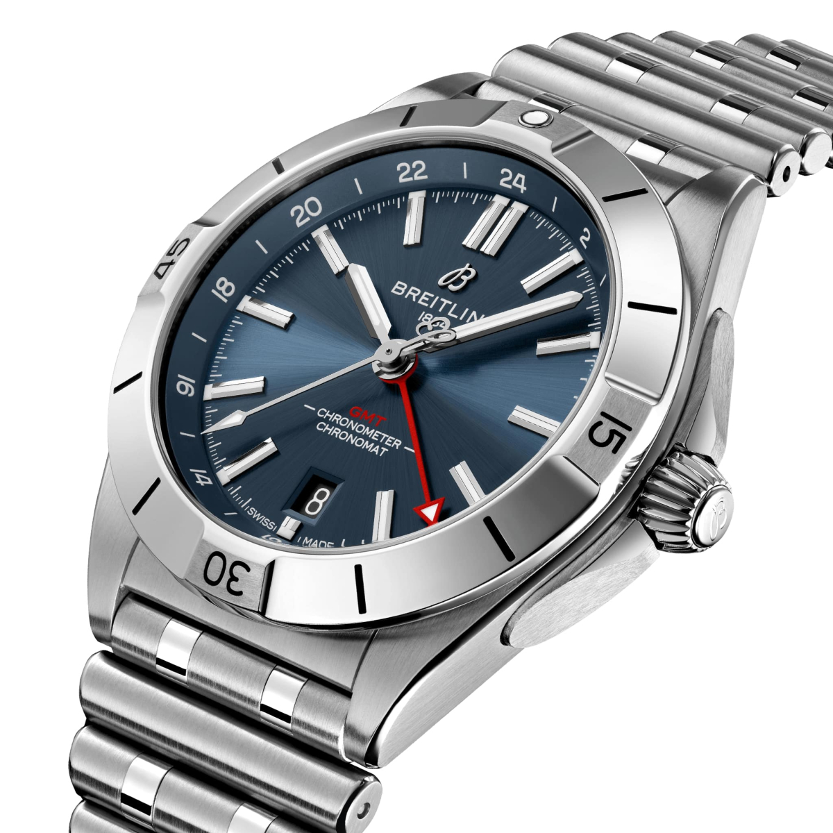 Швейцарские часы Breitling Chronomat Automatic GMT 40 A32398101C1A1 это универсальные часы для любых целей, созданные для мужчин. Коллекция Chronomat занимает важное место в истории Breitling. Впервые представленные в 1984 году, во время повсеместной популярности ультратонких кварцевых часов, Breitling представляет новую версию Chronomat, претендующую на соответствующие позиции в покупательских приоритетах. Женские часы Chronomat Automatic GMT 40, доступные в различных комбинациях самых качественных материалов, включая нержавеющую сталь, имеют корпус 40 мм и выделяются культовым безелем с четырьмя язычками в сочетании с фирменным браслетом Rouleaux. Автоматический механизм - хронометр, сертифицированный COSC, с отображением времени во втором часовом поясе.
