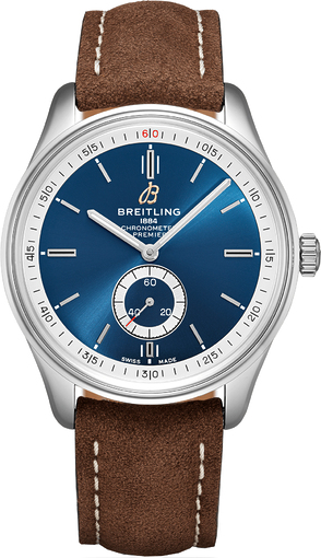 В часах Breitling Premier Automatic 40 A37340351C1X2 использован замшевый ремешок коричневого цвета из высококачественной кожи с контрастной прошивкой. Ширина ремешка 20/18 мм. Классическая литая застежка - пряжка из нержавеющей стали украшена эмблемой часовой марки.