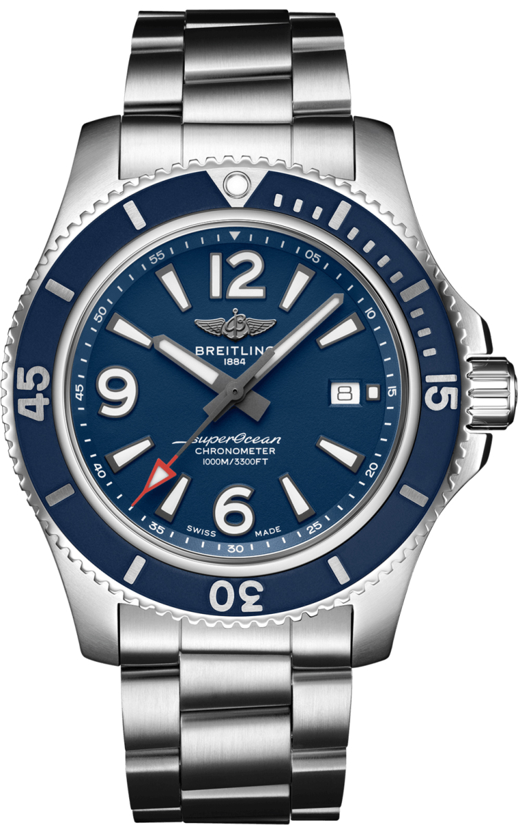 Корпус универсального размера модели Superocean Automatic 44 AA17367D81C1A1 выполнен из высококачественной легированной стали с повышенной стойкостью к появлению коррозии, поверхности с матовой шлифовкой - сатинированием и полировкой до алмазного блеска. Диаметр корпуса составляет 44.00 мм, толщина - 14,20 мм. Вес - 220.00 грамм. Однонаправленный безель вращается со щелчками в только направлении против хода стрелок, боковая грань с ребристой насечкой, фронтальная поверхность с контрастной разметкой, на “12 часах” находится светящаяся в темноте капсула со фотолюминесцентным элементом. Завинчивающаяся заводная коронка с двойным уплотнителями для защиты от попадания влаги внутрь корпуса и задняя крышка с резьбовым соединением с корпусом. Водонепроницаемость 1000 метров или 3,300 ft.