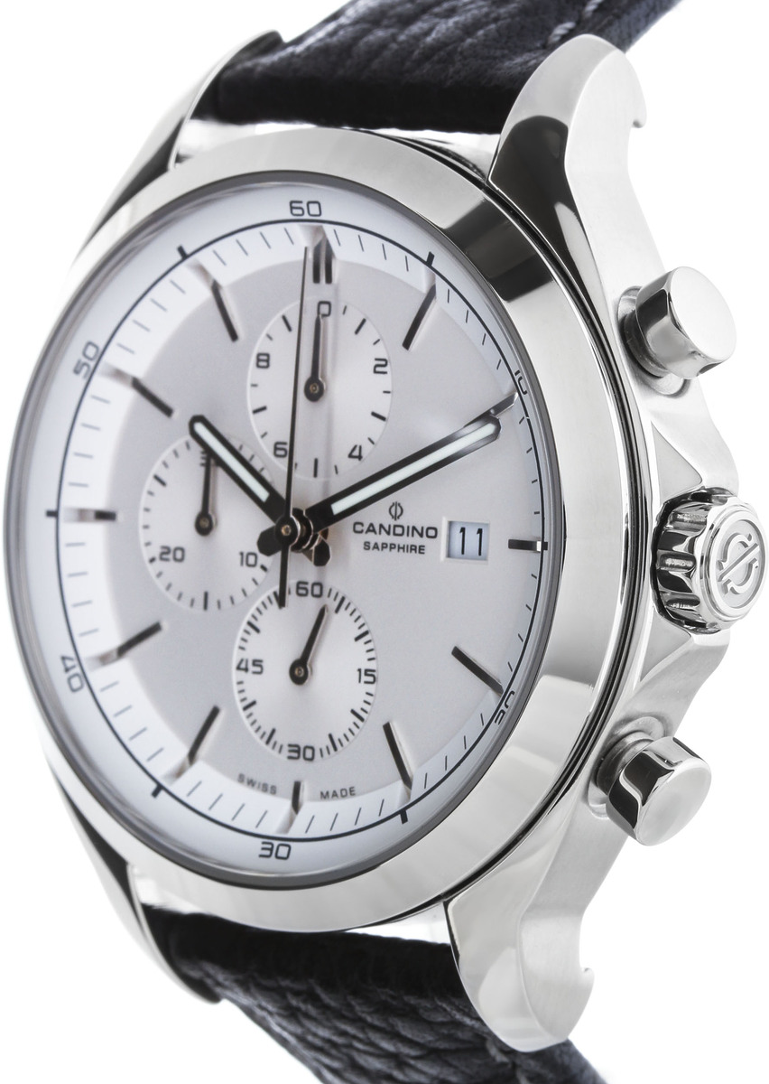 Данная модель — яркий представитель коллекции Sportive. Это великолепные мужские часы. Материал корпуса часов — сталь. В этой модели стоит сапфировое стекло. Часы этой модели обладают водозащитой 100 м. В этих часах используются такие усложнения как дата, хронограф. Корпус часов в диаметре 44мм.