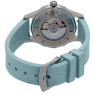 Швейцарские часы Corum A400/03172 имеют голубой ремешок из вулканизированного каучука с тиснением, ширина 14/16 мм, классическая застежка пряжка.