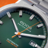 Циферблат Epos Sportive 3442.132.20.13.30 изумрудно-зеленого цвета обработан в стиле “солнечные лучи”. Аппликация часовых индексов, цифр и стрелки с покрытием цвета родия. Люминесцентное покрытие Super-Luminova, светящееся в темноте, на стрелках и часовых метках.