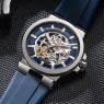 Модель Epos Sportive 3442.135.20.13.52 выпускается на каучуковом ремешке синего цвета с тиснением, ширина 22 мм. Браслетная застежка, раскладывающаяся при нажатии на кнопки двойной блокировки, с дополнительным защитным фиксатором.