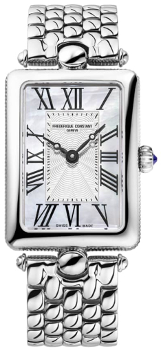 Швейцарские часы Frederique Constant Classics Art Deco FC-200MPW2AC6B в традиционном изысканном стиле предназначены для женщин. Прямоугольный корпус Frederique Constant Classics Art Deco из высококачественной стали и перламутровый циферблат с гильошированием и римскими цифрами в винтажном стиле обращаются своим дизайном к одной из самых элегантных и выразительных эпох - к Арт-деко.