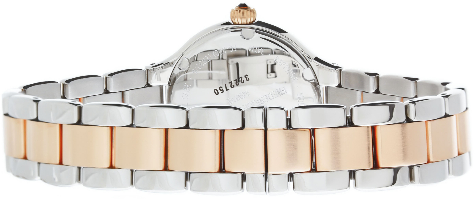 Модель Frederique Constant FC-200WHD1ER32B имеет браслет с литыми звеньями в 3 ряда из нержавеющей стали с частичным покрытием розовым золотом. Браслетная застежка “бабочка” тройного сложения.