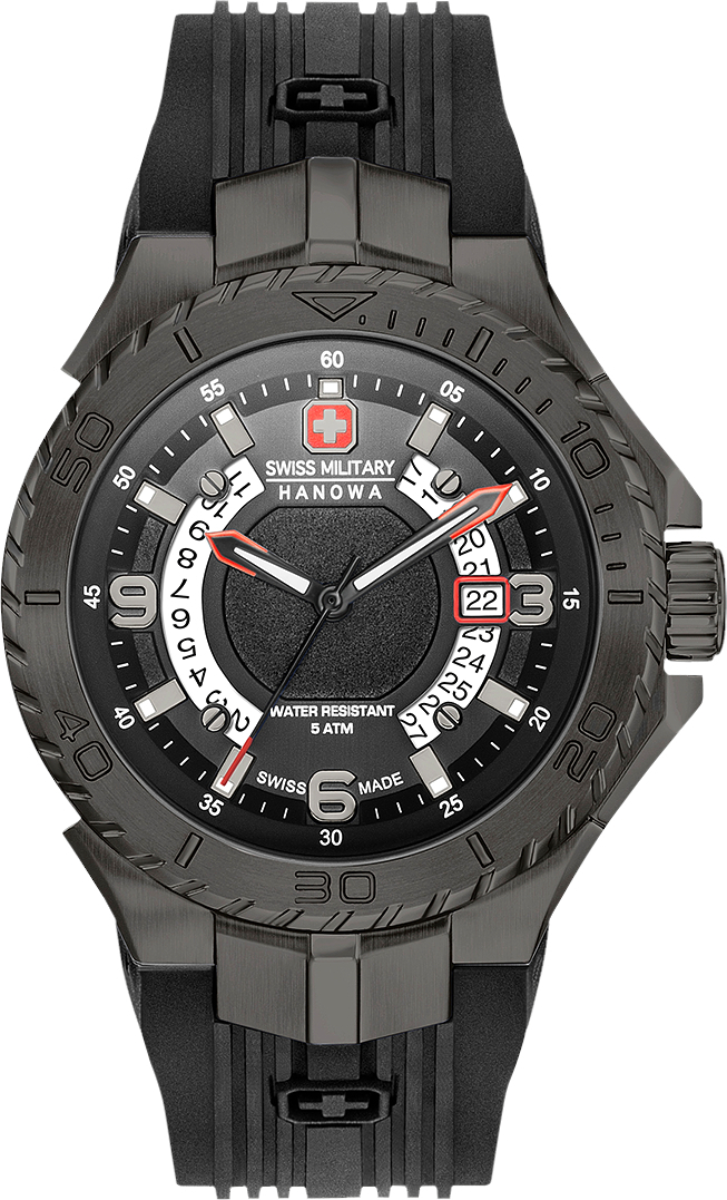 Швейцарские часы Hanowa Swiss Military Aqua Seaman 06-4327.13.007.07 в спортивном стиле элементами милитари. Полностью черный дизайн часов соответствует всем современным требованиям.