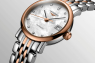 Модель Longines Elegant L4.309.5.87.7 поставляется с браслетом из нержавеющей стали с литыми звеньями разного размера в 7 рядов, 2 центральных ряда с покрытием “cap 200” розовым золотом 18К, ширина 13 мм, браслетная застежка тройного сложения “бабочка” раскладывается при нажатии кнопок двойной фиксации.