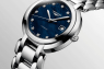 Модель Longines PrimaLuna L8.113.4.98.6 поставляется с браслетом из нержавеющей стали с литыми звеньями разной ширины в 5 рядов, ширина между ушками 7 мм, браслетная застежка тройного сложения “бабочка” раскладывается при нажатии кнопок двойной фиксации.