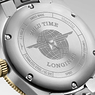 Швейцарский механизм с автоматическим подзаводом L844.4 персонализирован и декорирован маркой Longines. Калибр L844.4 декорирован на высоком уровне. Точность хода в соответствии сертификатом хронометра Swiss Official Chronometer Testing Institute. Погрешность точности хода каждого, индивидуально пронумерованного, механизма C.O.S.C. не должна превышать -4/+6 секунд в сутки и проверяется последовательно в 5 положениях на протяжении 15 суток при температуре: 8, 23 и 38°C. Запас хода составляет 72 часа, частота колебаний баланса с монокристаллической кремниевой спиралью составляет 25.200 vph или 3,5 Hz, 21 рубин в качестве камневых опор колесной системы и паллет анкерного спуска. Центральные часовая, минутная и секундная стрелки, индикация даты в апертуре на отметке “6 часов”, указатель времени второго часового пояса в 24-часовом формате при помощи доп. центральной стрелки.