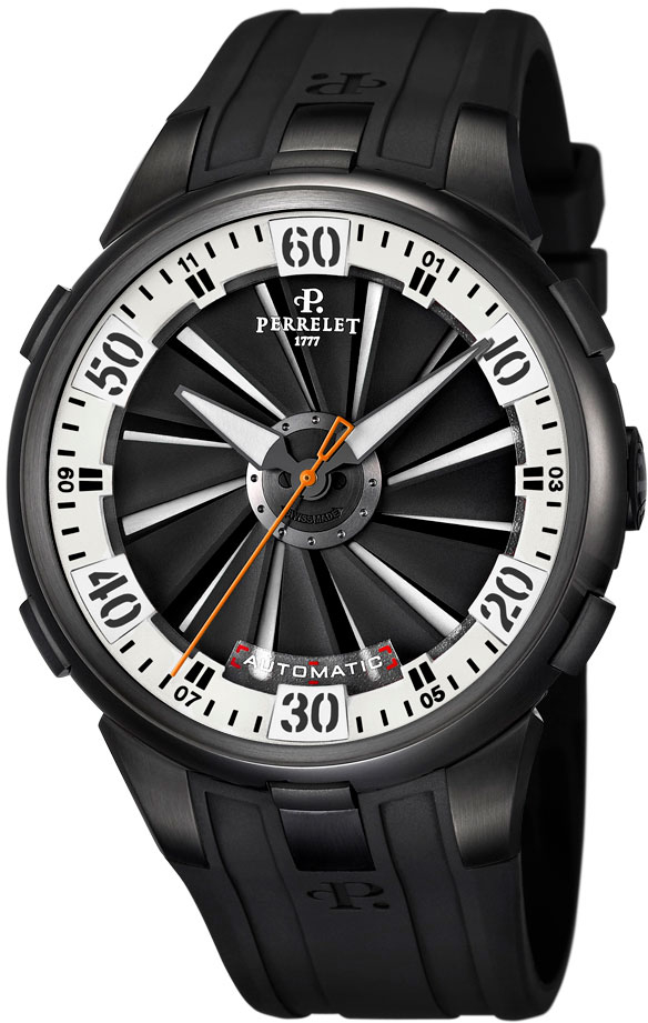 Швейцарские часы Perrelet Turbine Regular A1051/4 созданы для современных мужчин, обладающих отличным вкусом и ценящих индивидуальный стиль. Модель Turbine Regular обладает непревзойденным узнаваемым дизайном. Круглый корпус выполнен из высококачественной нержавеющей стали с черным покрытием. Мануфактурный механизма с двойным ротором автоматического подзавода, видимым со стороны циферблата.