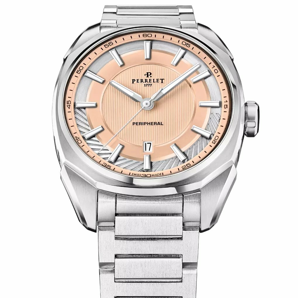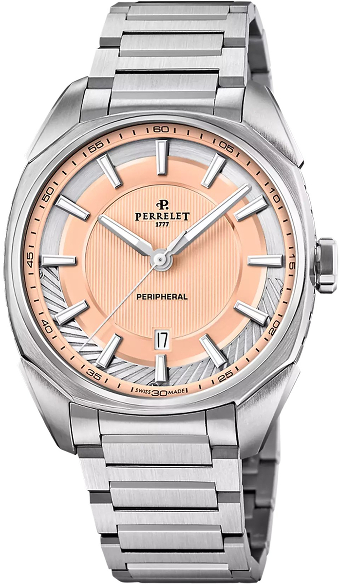 Швейцарские часы Perrelet LAB Peripheral A1100/E созданы для мужчин, обладающих отличным вкусом, и соответствуют современному стилю casual-chic, новому в коллекциях Perrelet. Модели LAB Peripheral отличает переферический ротор автоподзавода, видимый со стороны циферблата. Благодаря его движению с естественным ритмом часы Perrelet LAB Peripheral выделяет сдержанная и изысканная анимация как нельзя лучше подходящая к девизу мануфактуры Perrelet - «Роскошь в движении».