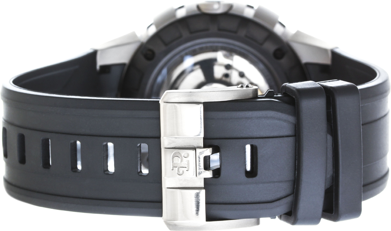 Представленная модель входит в коллекцию Turbine. Это модные мужские часы. Материал корпуса часов — сталь+титан. В этой модели стоит сапфировое стекло. Цвет циферблата - черный.