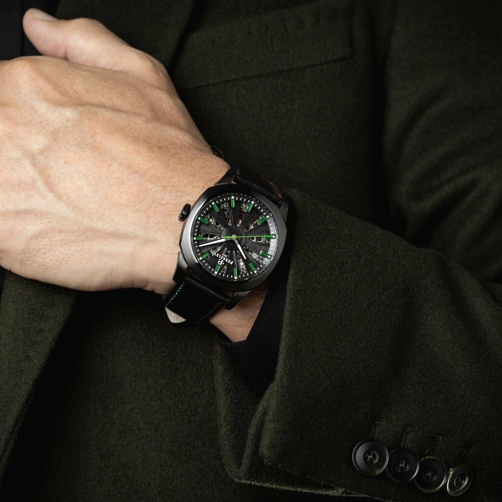 Швейцарские часы Perrelet Turbine Urban Skeleton A1062/1 созданы для современных мужчин, обладающих отличным вкусом и ценящих индивидуальный стиль. Модель Turbine Urban Skeleton сочетает элементы дизайна моделей LAB Peripheral с фирменной технологией Double Rotor Turbine. Открытый циферблат при вращении лопаток ротора делает видимой всю красоту скелетонизированного механизма. Корпус выполнен из высококачественной нержавеющей стали с черным покрытием. Мануфактурный механизм с двойным ротором автоматического подзавода P-331-SQ является сертифицированным хронометром.
