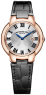 Серебристый циферблат с фирменным гильошированием обращающимся к цветку жасмина. Римские цифры, выполненные методом печати, и фигурные стрелки имеют покрытие черного цвета.