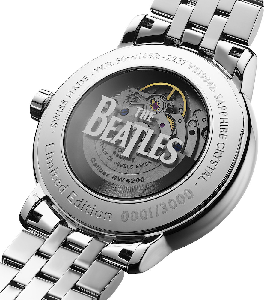 Позиция «4 часа» украшена особым индексом, стилизованным под известнейшую обложку одноимённого с моделью альбома. В выгравированных силуэтах легко узнаются «битлы», переходящие ту самую Эбби-Роуд.