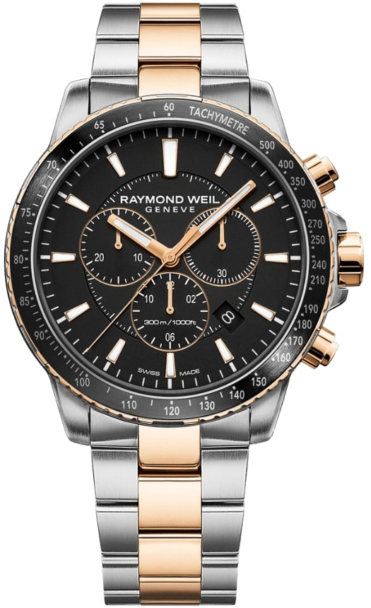 Швейцарские часы Raymond Weil Tango 8570-SP5-20001 в элегантном и одновременно мужественном стиле. Круглый корпус с рельефным безелем и браслет с литыми звеньями выполнены из нержавеющей стали с частичным покрытием розовым золотом. Престижные часы Tango соответствуют эстетике стиля «модерн» и дополняют имидж своего владельца. Серьезная водозащита корпуса на глубине до 300 метров. Точный кварцевый механизм, произведенный в Швейцарии, с функцией хронографа и индикацией даты.