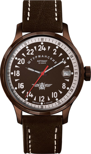 Российские часы Штурманские Открытый космос 2431/1768939. Мужские наручные механические часы с автоподзаводом. Классический круглый корпус выполнен из нержавеющей стали с бронзовым PVD-покрытием и минерального стекла. На обратной стороне корпуса гравировка, посвященная первому выходу человека в космическое пространство. 32 камня. 24-часовой формат отображения времени, часовая, минутная и секундная стрелки, индикатор даты. Ремешок из натуральной кожи, со стальной пряжкой.