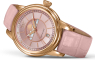 Розовый ремешок из телячьей кожи с тиснением под аллигатора, пружинная шпилька с рычажком для быстрой замены ремешка, ширина 16/14 мм, классическая застежка – пряжка из нержавеющей стали.