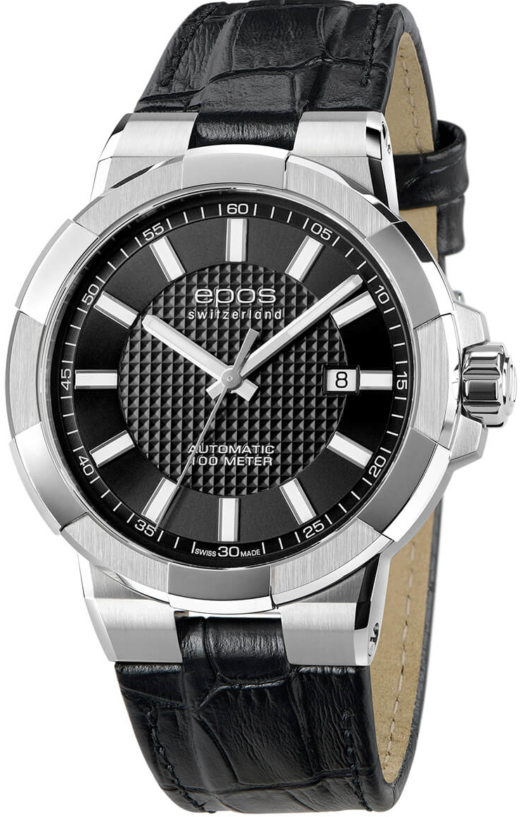 Модель Epos Sportive 3443.132.20.15.75 выпускается на кожаном ремешке черного цвета с тиснением "под аллигатора", ширина 25 мм. Классическая застежка пряжка из нерж. стали.