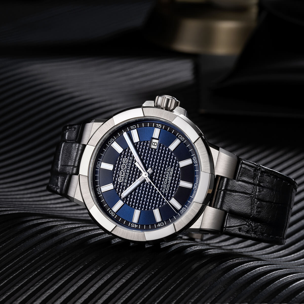 Модель Epos Sportive 3443.132.20.16.75 выпускается на кожаном ремешке черного цвета с тиснением "под аллигатора", ширина 25 мм. Классическая застежка пряжка из нерж. стали.