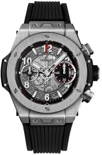Корпус универсального диаметра модели Hublot Big Bang Unico 441.NX.1170.RX выполнен из титана высшего качества Grade 5, поверхности с матовой шлифовкой – сатинированием и полировкой до зеркального блеска. Титан является исключительно легким и прочным, имеет высокую устойчивость к коррозии и гипоаллергенен, широко применяется в авиационной промышленности. Благодаря полировке данный материал приобретает слегка голубоватый металлический отблеск. Диаметр корпуса составляет 42.00 мм. Безель с вертикальным сатинированием и полировкой соединяется с корпусом 6 титановыми винтами с фирменным H-образными шлицами. Задняя крышка с прозрачным окном из сапфирового стекла соединена с корпусом 6 винтами. Водостойкость 100 метров или 10 АТМ. Кнопочная система One-Click для быстрой замены одного ремешка на другой.