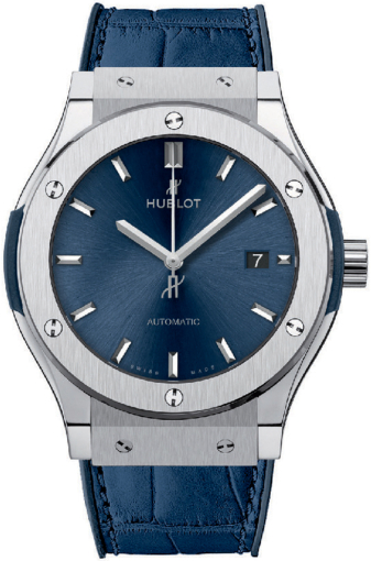 Корпус модели Hublot Classic Fusion 542.NX.7170.LR выполнен из титана высшего качества Grade 5, поверхности с матовой шлифовкой – сатинированием и полировкой до зеркального блеска. Титан является исключительно легким и прочным, имеет высокую устойчивость к коррозии и гипоаллергенен, широко применяется в авиационной промышленности. Благодаря полировке данный материал приобретает слегка голубоватый металлический отблеск. Диаметр корпуса составляет 42.00 мм. Безель с вертикальным сатинированием соединяется с корпусом 6 титановыми винтами с фирменным H-образными шлицами. Задняя крышка с прозрачным окном из сапфирового стекла соединена с корпусом 6 винтами. Водостойкость 50 метров или 5 АТМ.