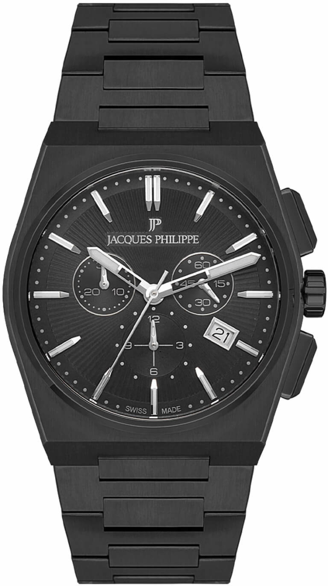 Корпус круглой формы выполнен из нержавеющей стали марки 316L с полировкой и матовой шлифовкой поверхностей. Корпус с IP покрытием черного цвета. Диаметр корпуса модели Jacques Philippe JPQGC414311 составляет 42 мм. Задняя крышка с гравировкой имеет резьбовое соединение с корпусом. Водостойкость 5 АТМ (50 метров).