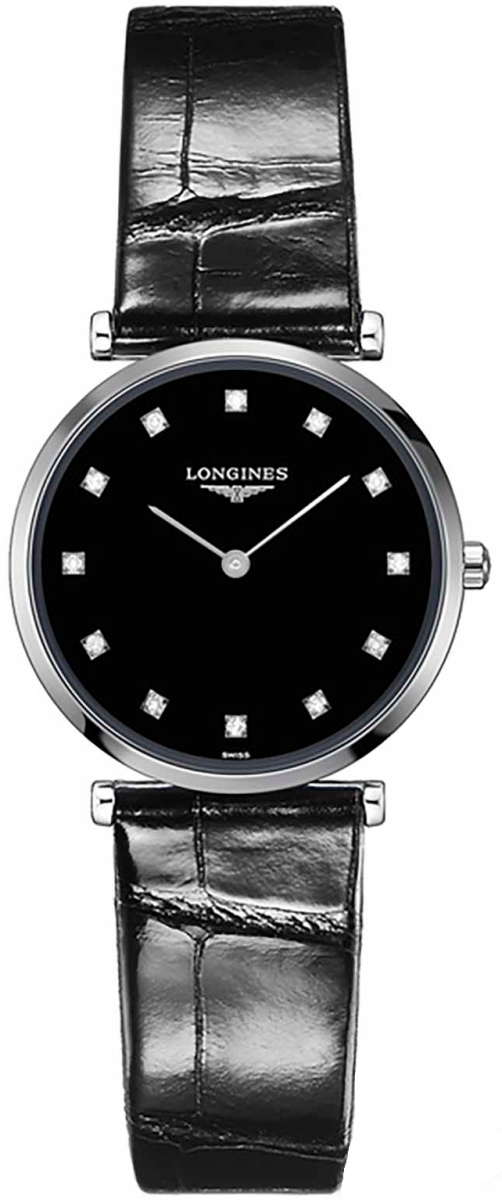 Модель Longines La Grande Classique L4.209.4.58.2 поставляется с черным ремешком из кожи аллигатора, ширина 13 мм, классическая застежка пряжка из нержавеющей стали.