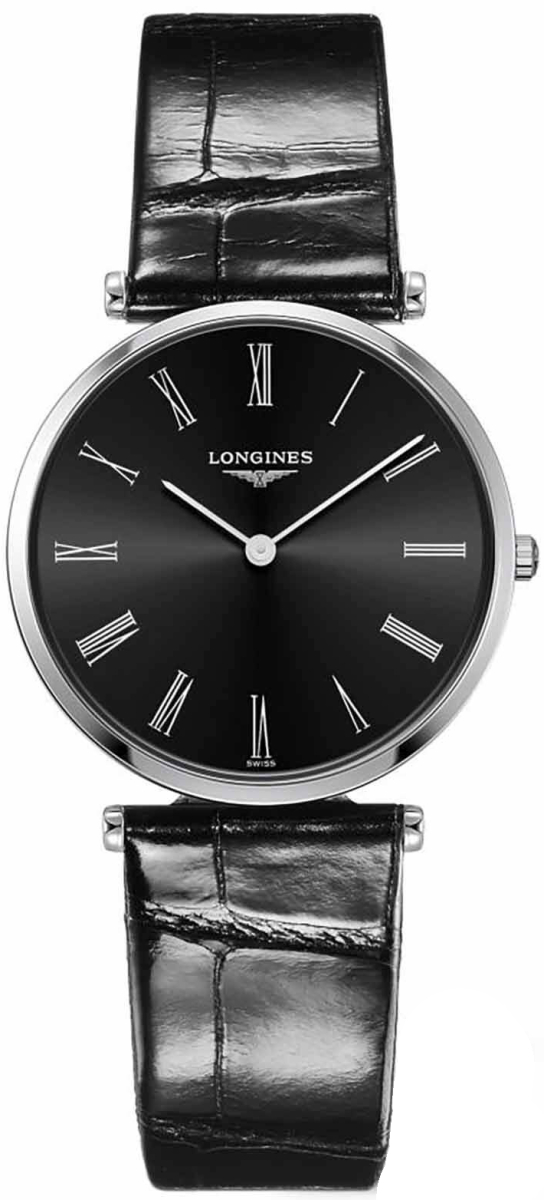 Модель Longines La Grande Classique L4.709.4.51.2 поставляется с черным ремешком из кожи аллигатора, ширина 18 мм, классическая застежка пряжка из нержавеющей стали.