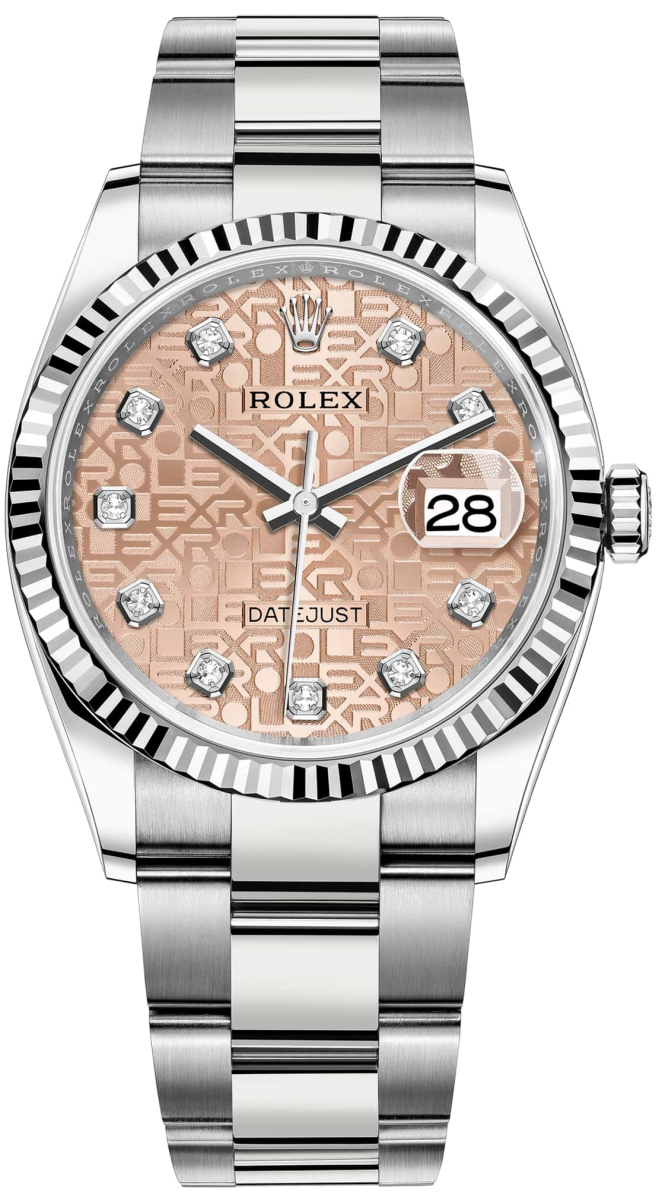 Корпус Oyster модели 126234-0024 выполнен в биметаллическом исполнении Rolesor. Сам корпус и задняя крышка произведены из высококачественной стали Oystersteel 904L. Диаметр составляет 36 мм. Легендарный безель с рифлением, разработанный в 1926 году для модели Oyster, имел новаторскую конструкцию и служил для дополнительной герметизации корпуса, теперь он радует глаз неповторимой игрой отражаемых лучей света. Заводная головка с винтовой фиксацией и системой двойной герметизации Twinlock украшена эмблемой марки. Безель и заводная головка из 18‑каратного белого золота. Завинчивающаяся задняя крышка с фирменной насечкой для открытия. Водонепроницаемость до 100 метров.